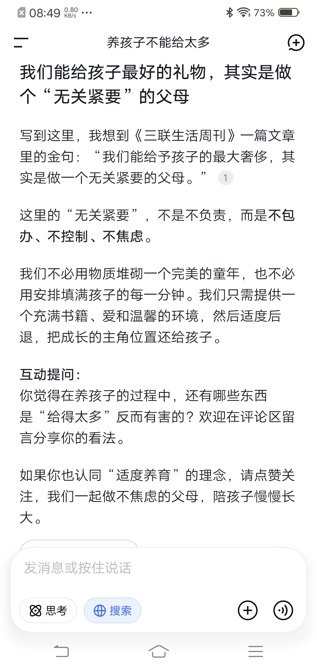 如果你也认同“适度养育”的理念,请点赞关注,我们一起做不焦虑的父母,陪孩子慢慢长大。
