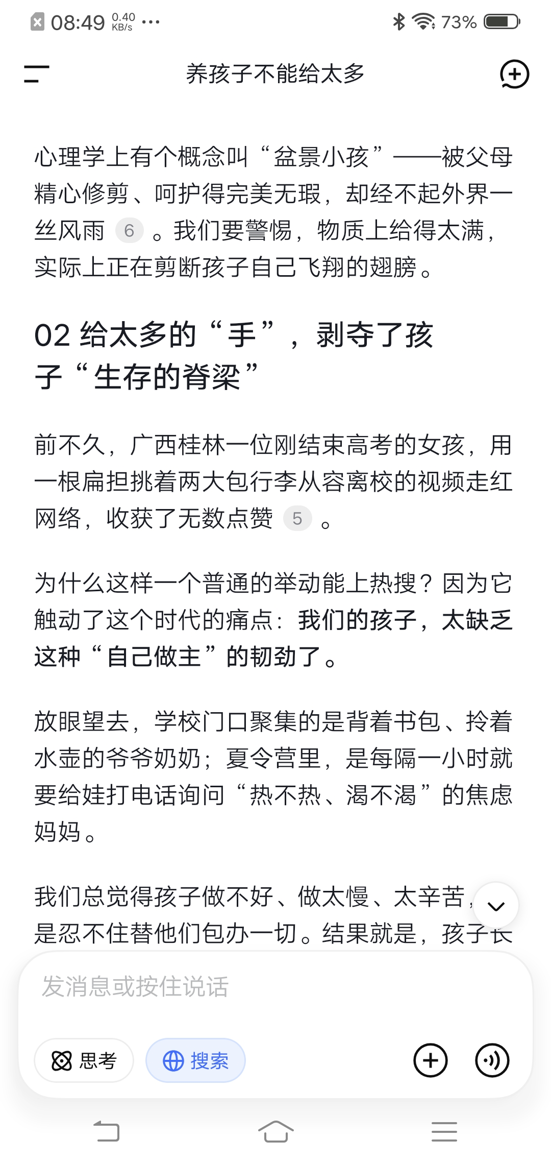 心理学上有个概念叫“盆景小孩”——被父母精心修剪、呵护得完美无瑕,却经不起外界一丝风雨 。我们要警惕,物质上给得太满,实际上正在剪断孩子自己飞翔的翅膀。