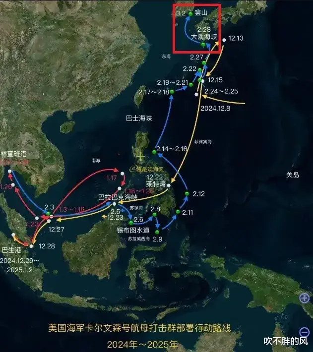 2月28日,解放军815A型795号电子侦察船通过大隅海峡进入东海,而几乎在同一时间,美军“卡尔·文森”号航母也穿越了大隅海峡,随后躲进了韩国釜山港。