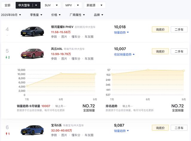 风云A9L的入场,将直面比亚迪汉DM-i/DM-p所构筑的牢固市场壁垒。汉系列凭借其先发优势、成熟的技术形象和深入人心的品牌认知,在中大型插混轿车市场占据着主导地位。