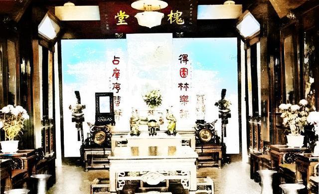 内宅客厅特别富丽堂皇,顶上挂着吊灯,墙上挂着一幅写着“得园林乐趣,占庠序蜚声”的中堂,厅里的家具精美极了。