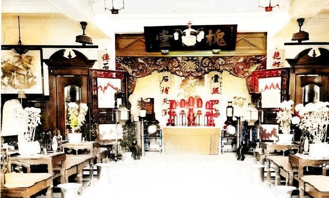 黄家花园也叫“槐荫堂”,场地和面积比客厅大多了。各个大厅里都挂着写着“槐荫堂”的大匾额。看玉石屏风、落地大钟,还有吊灯、座位的排列就能知道,黄金荣这人特爱把东西左右对称着摆放。