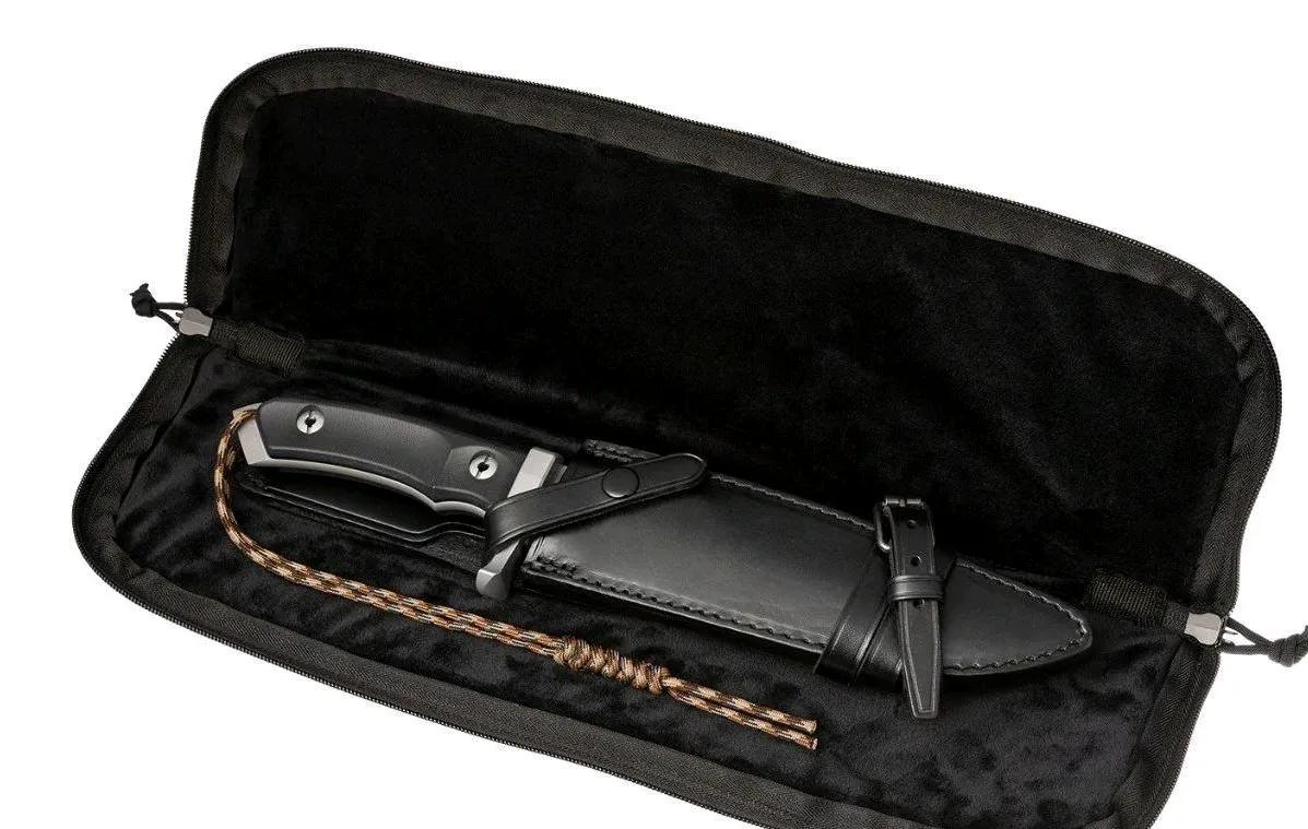 该刀配备了在美国定制的迷彩刀绳,这一设计别具匠心,和电影中的原版刀绳完全一样,对于电影爱好者和刀具收藏者来说,具有极高的吸引力,不仅增加了刀具的文化内涵和收藏价值,还为使用者带来了一种独特的体验。该刀的皮套更是彰显了高档与质感,采用的皮质细腻柔软,触摸起来手感极佳。带绑腿皮带的设计,方便使用者将刀具固定在腿部,便于携带和取用。更值得一提的是,皮套上由设计师Dietmar Pohl亲自签名,这也使得MK - 8在收藏领域具有更高的地位。