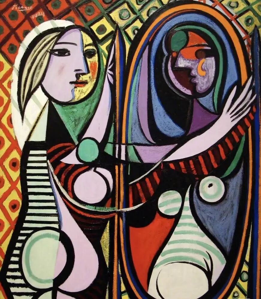 比如《老吉他手》的蓝色调,诉说的是底层人民的孤独;《镜前的少女》粉色肌肤与绿色阴影的强烈色彩对比,是在探讨真实与虚幻、青春与衰老的矛盾。他的画作从未远离生活,而是将情感、社会与哲学凝练成视觉语言。真正打动人的,从来都不是技巧,而是藏在作品里的 “真心”。