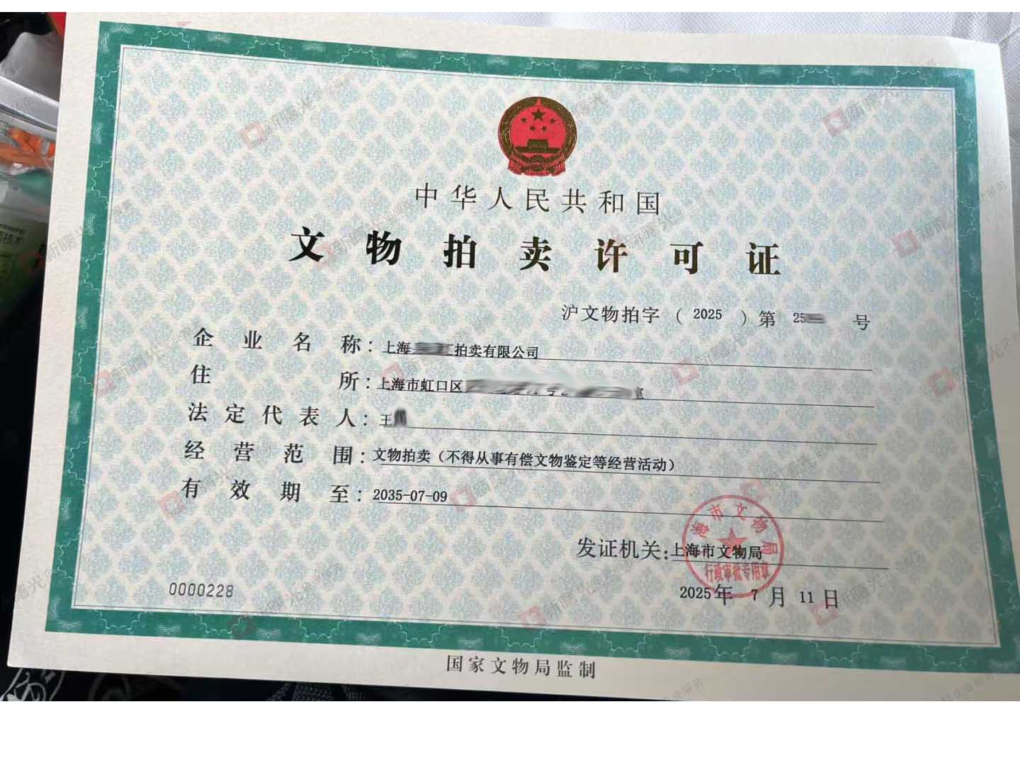 首先,公司底子得扎实。申请文物拍卖许可需要注册资本必须实打实有1000万元以上,而且得是纯内资企业,中外合资、外商独资的都不符合要求。申请文物拍卖许可最关键的是,得先拿到《拍卖经营批准证书》,这是申请文物拍卖许可证的前置条件,想办理文物拍卖许可证必须先办理普通拍卖资质。