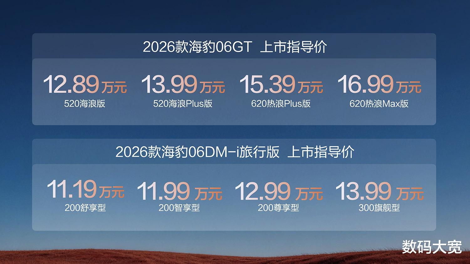 比亚迪海洋网正式迎来两位新成员——2026款海豹06GT与2026款海豹06DM-i旅行版,两款新车在当天同步上市。价格方面,海豹06GT官方指导价区间为12.89万至16.99万元,而海豹06DM-i旅行版为11.19万至13.99万元。为了提升用户体验,两款新车都提供了覆盖购车、选装及后期养护等多维度的权益。海豹06GT的用户还能额外获得一年的闪充补能权益,可以尽情体验全场景自由闪充带来的便捷与科技感。