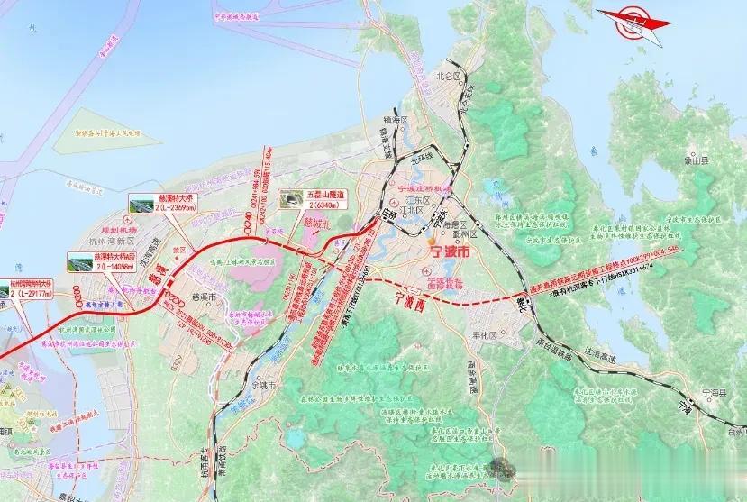 新建线路48.65公里,速度目标值350km/h,设车站1座(宁波西站),动车所1处。计划近期建设8台16线,远期预留同等规模用地。