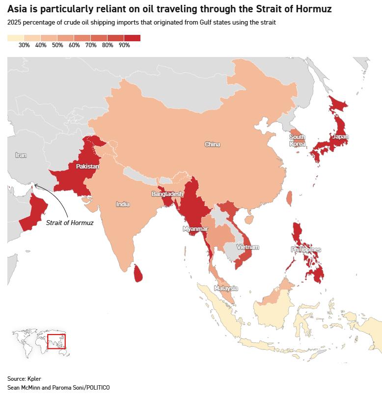 中国对霍尔木兹海峡的依赖度非常高。而根据最新船舶自动识别系统(AIS)数据显示,霍尔木兹海峡仍然处于瘫痪状态,伊朗革命卫队指挥官威胁要对任何通过这条狭窄水道的船只进行火力压制和摧毁。