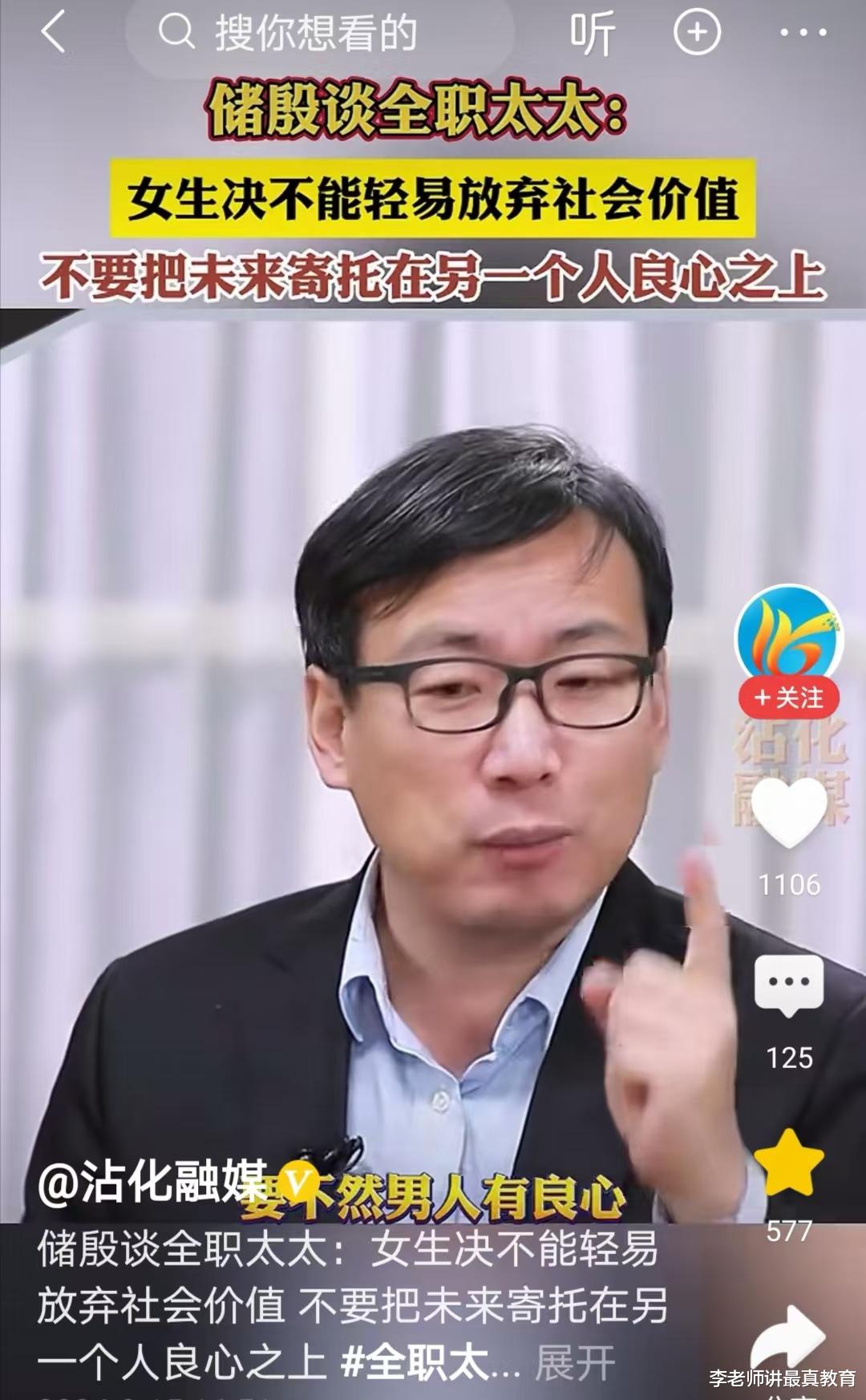不得不说,储殷教授的这番话还是很有良心的,至少说出了当代女性的一个困惑。目前很多家庭矛盾丛生,很多女性不愿生孩子,很多女性和婆媳关系不和,其实就是因为社会上大多数人并不尊重全职太太,无视她们的付出。