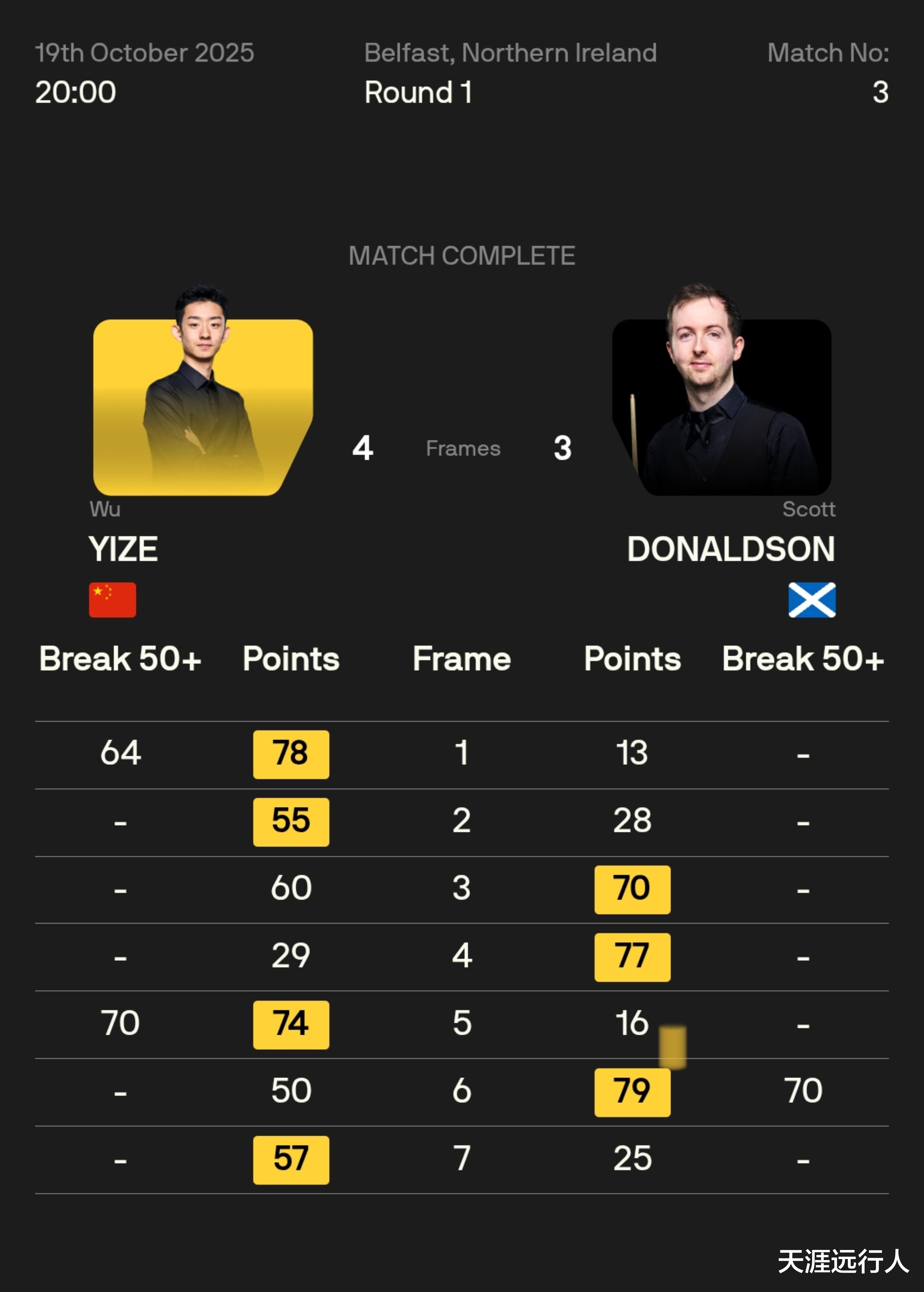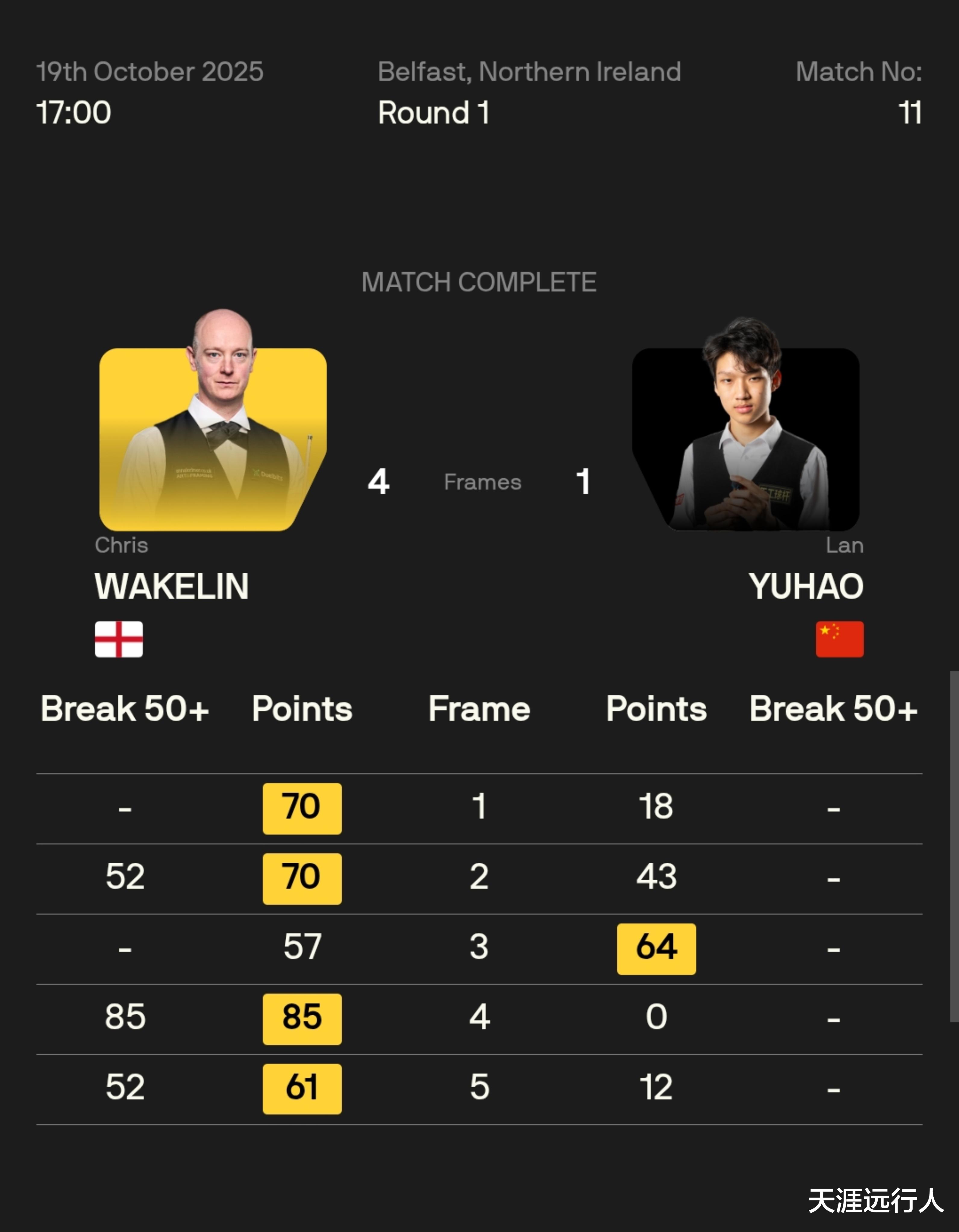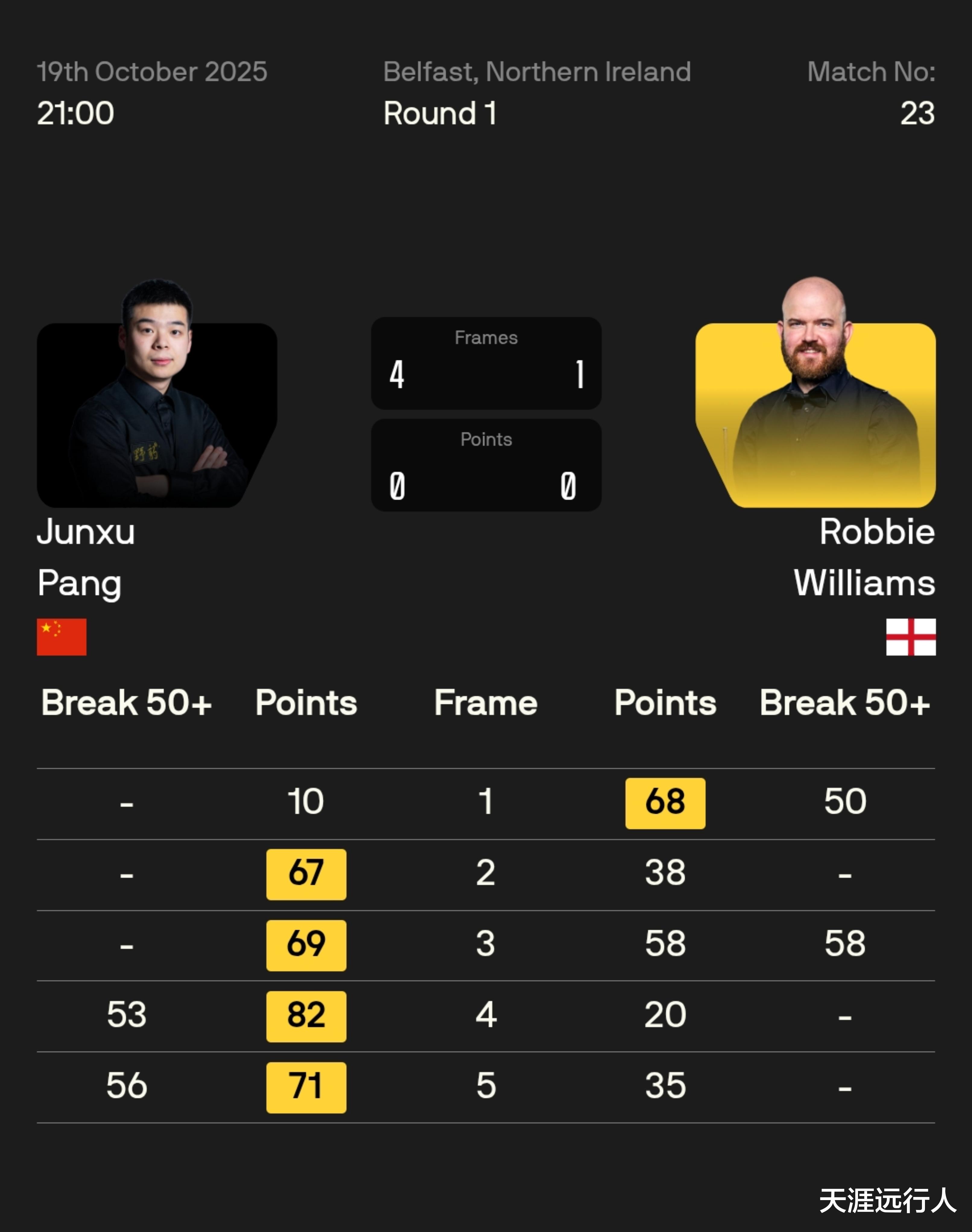 赛前尼尔·罗伯逊也退出了比赛,据其口述是在西安染上了病疾,再加上出局赵心童,TOP16已有六人淡出了北爱赛事。