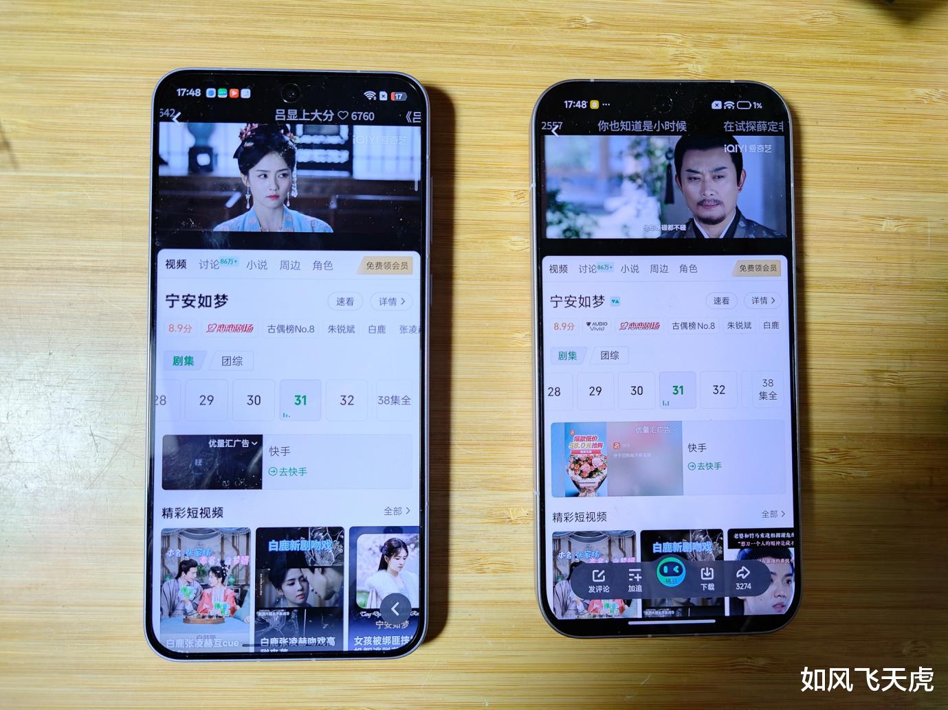 测试续航,充电到100%,然后就同时使用爱奇艺播放同一部连续剧,直到电池耗尽。时间从下午5点钟开始。