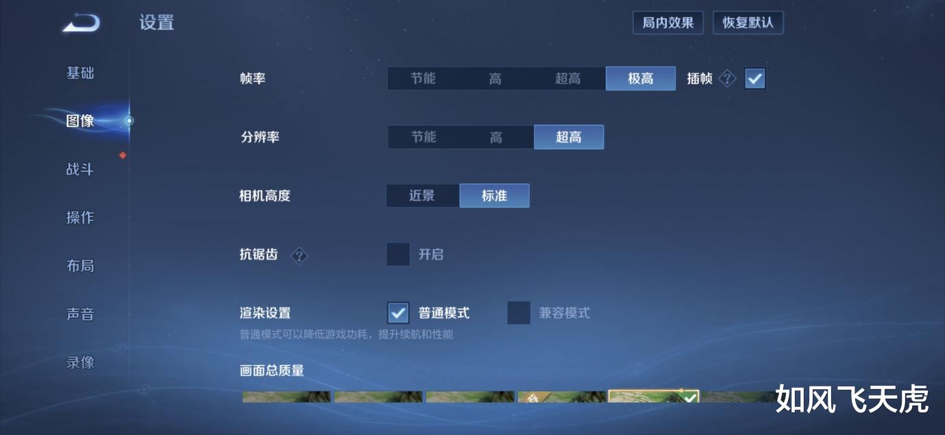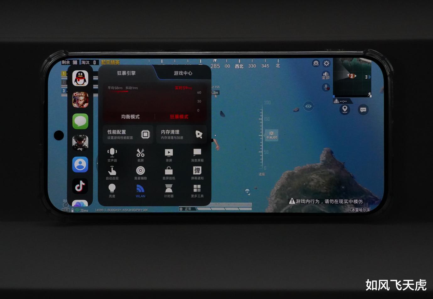 风驰游戏内核开启电竞模式,超级帧率、极速触控、增强网络,都是对游戏的优化。