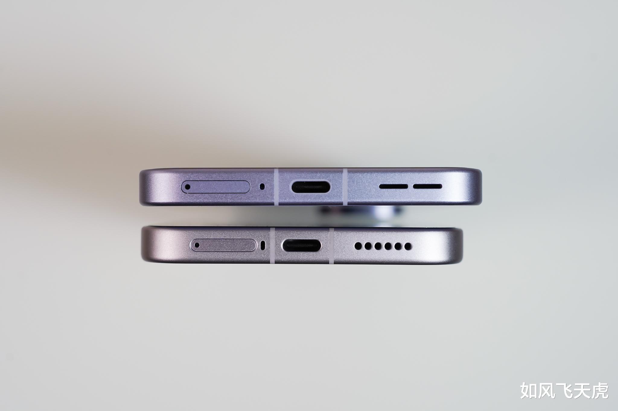 手机的底部基本相同,有sim卡槽、USB-C接口和扬声器。