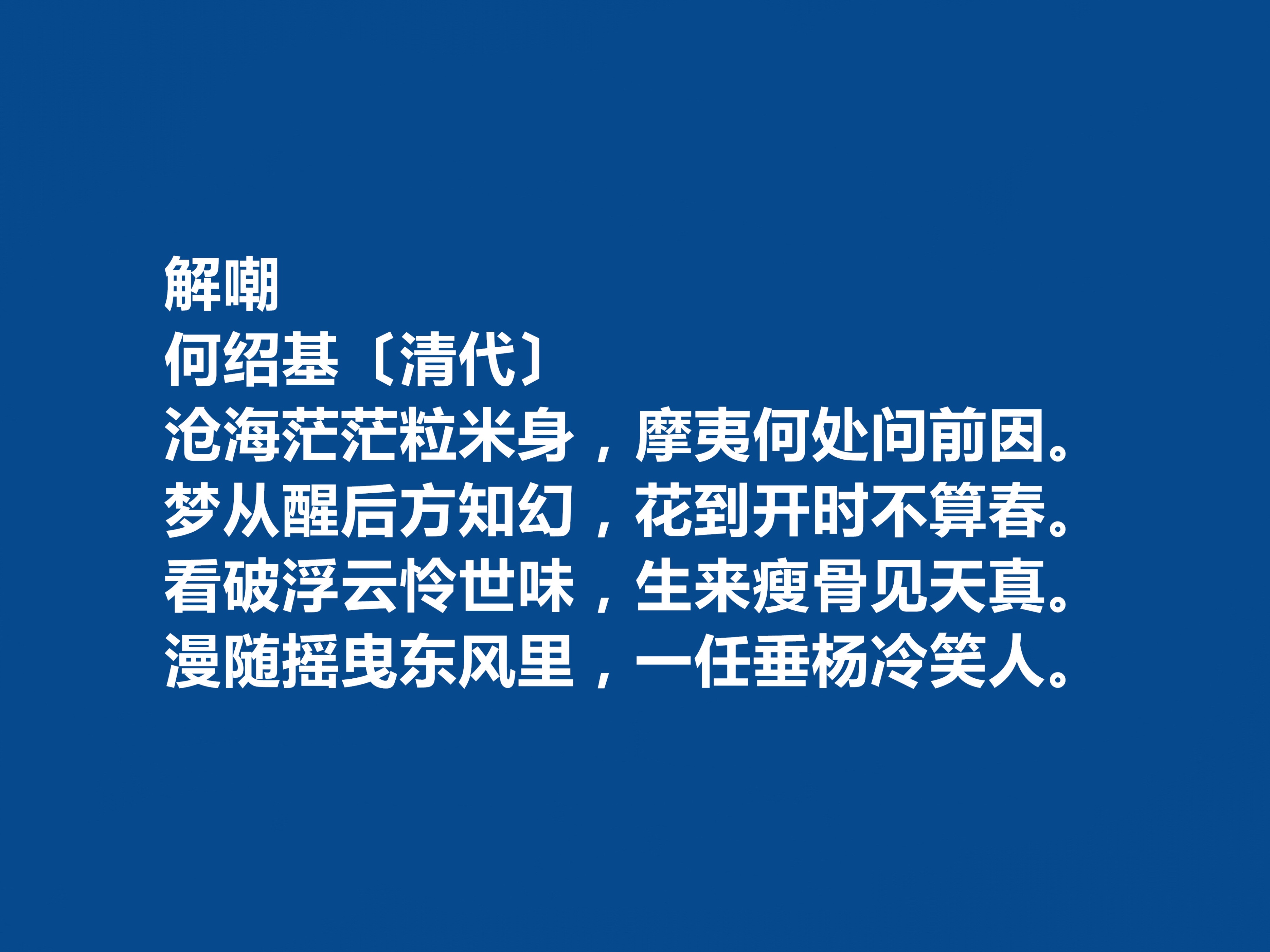 在晚清文坛与艺苑的星空中,何绍基无疑是一颗兼具光芒与厚度的巨星。作为诗、书双绝的大家,他在道咸年间的文坛占据着举足轻重的地位,以独树一帜的创作风格与理论主张,为衰落的晚清文学注入了一股清刚之气;在政坛之上,他秉持着传统士大夫的操守,为官清正、体恤民情,以微薄之力践行着经世致用的理想,今天欣赏他的十首诗。