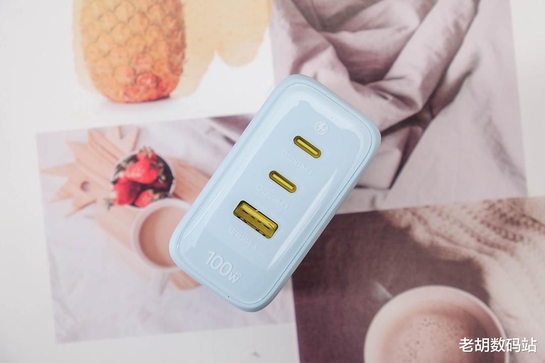 接口方面,提供了C1、C2和一个A口,总功率100W,其中两个C口(C1与C2)最高均支持100W输出功率,三口配置不算夸张,但胜在布局合理,插满也不会互相挤占。按照官方说法,它支持苹果8到17全系快充,iPhone 17半小时能回血70%,iPad Pro M4三十分钟可充至50%。
