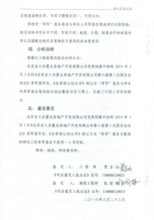 李军指控,2014年2月19日,陈红在其缺席的情况下召开会议,伪造签名形成决议,擅自接管公司法定代表人职权。3月3日,又伪造《股权转让协议书》和《股东会决议》,虚构李军将亚之杰置业2970万元出资转让给其母亲李善荣的事实。