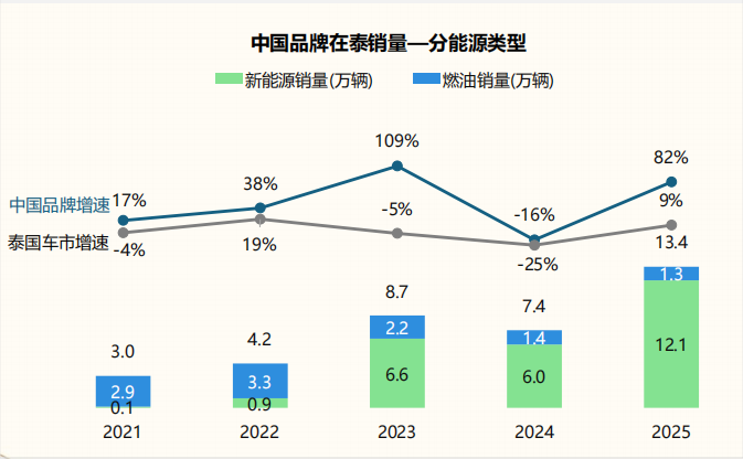 从2021年的4%到2025年的21.5%,中国品牌用五年时间在泰国完成市场份额的跨越式增长;从2026年1月的首次反超,到2月的市占率暴跌,又让我们看到海外市场的瞬息万变。
