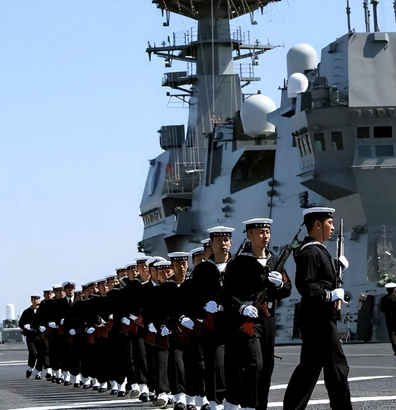 日本防卫费高,海自强,扩张意图清。借美纵容,军力正常化。日本费升GDP 2%,买进攻武器超防卫。日本海自重点,岛国需。准航母改造快,买F-35B,提升攻。日本潜艇强,没核但常规牛。美国建日本海自对中国海军。中国海军快,每年舰多,航母等超美部分。