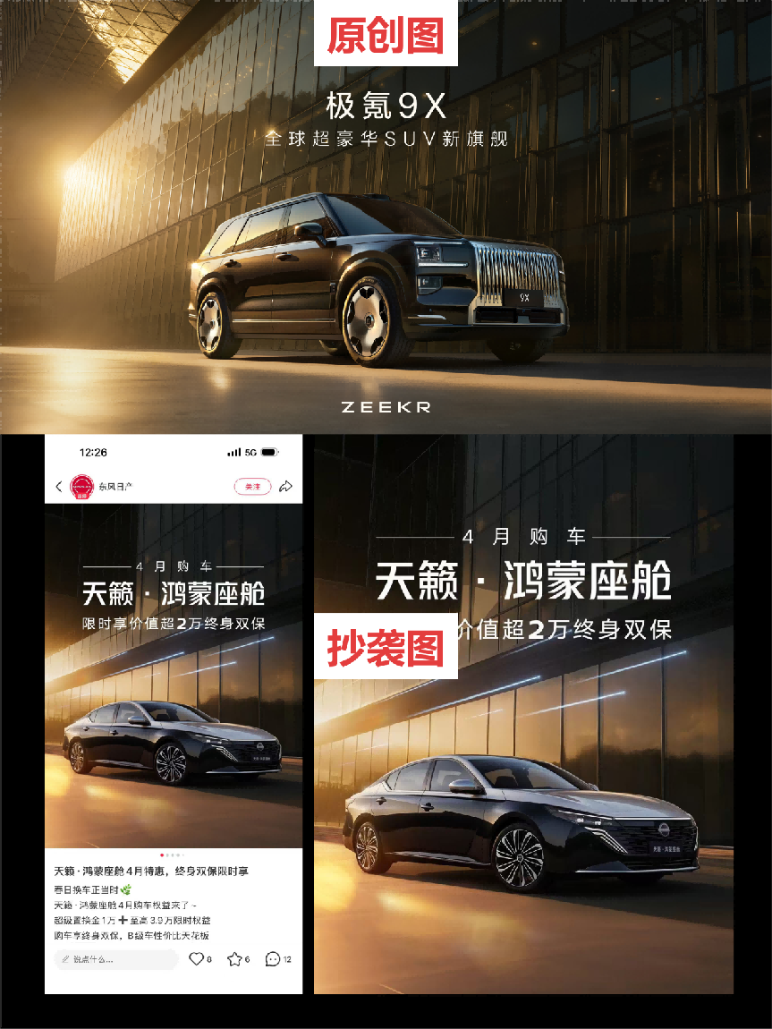 东风日产NX8官方宣传图全靠Ctrl+C和Ctrl+V抄袭人极氪9X,海报已被官方删除,这波到底抄没抄大家细品~