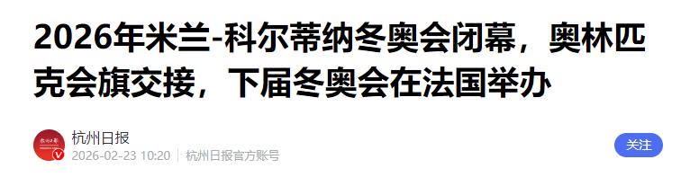 2026年米兰-科尔蒂纳冬奥会闭幕,奥林匹克会旗交接,下届冬奥会在法国举办 (baidu.com)