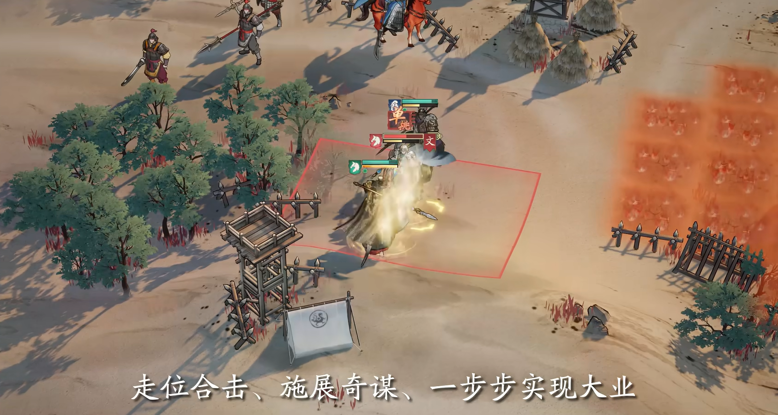 玩法上更是挑不出什么毛病了,战棋游戏本身的策略性就有一些,然后《三国望神州》为了更契合三国的主题,加入了不少符合三国特性的玩法,比如两军交战之前,有一个“武将单挑”环节,而在两军对垒时,你可以使用“合击”来进行排兵布阵上的领先,甚至还能使用三国中广为人知的经典计谋来瞬间扭转战局,可以说把三国的战场还原到极致了。