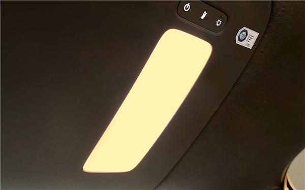 不止如此,该车二排配备多功能桌板,承托稳固且配备专属笔槽,搭配南德TUV护眼智慧顶灯,多功能椅背拓展接口可灵活为设备供电,满足娱乐与轻办公需求,同时还设有银离子保鲜冷暖箱,支持2–50℃宽域调温。