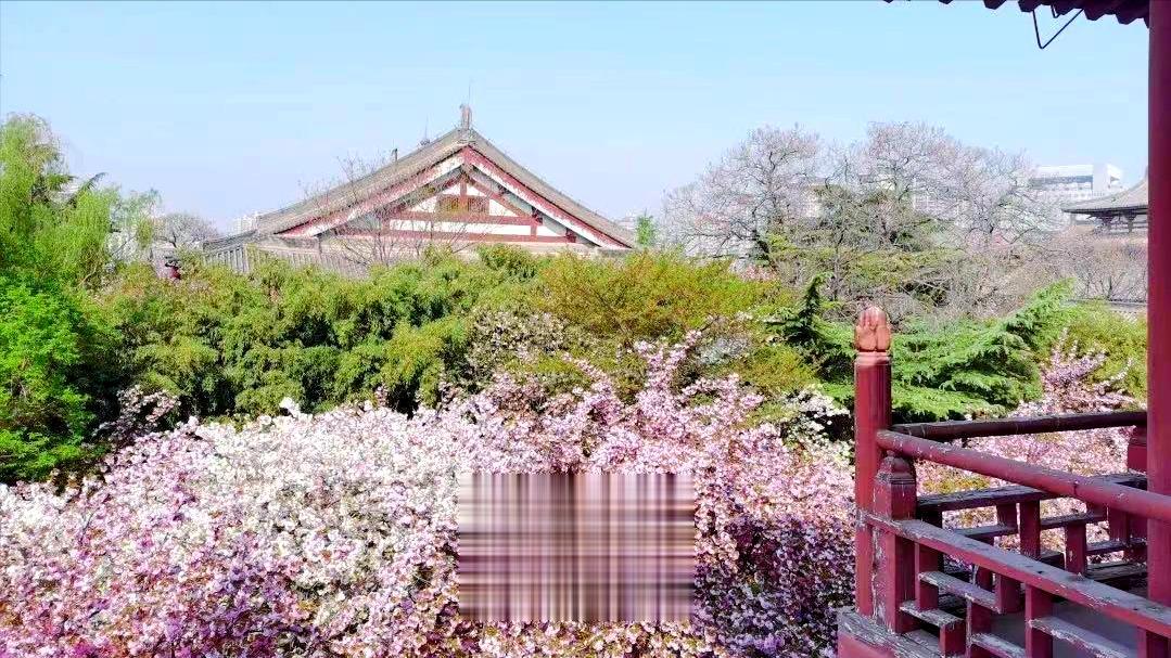 古寺的朱红院墙,是樱花最美的背景板,粉白、淡粉的花瓣依偎着斑驳古墙,青苔石阶、斗拱飞檐与繁花相映。在这里赏花,不仅能感受樱花的柔美,更能触摸盛唐文化的底蕴。