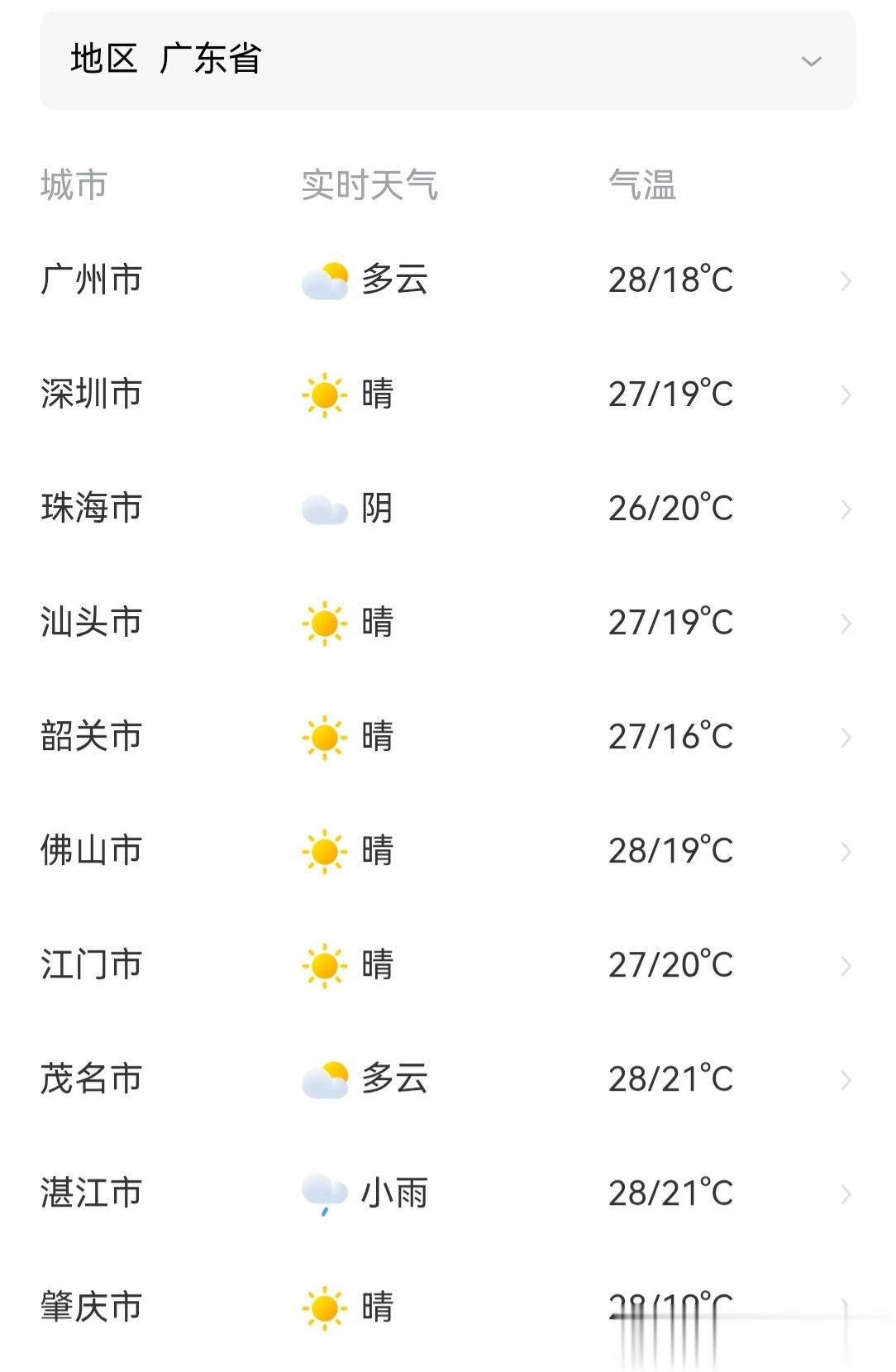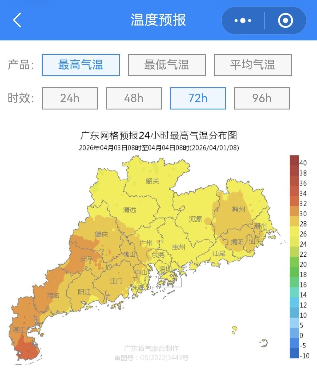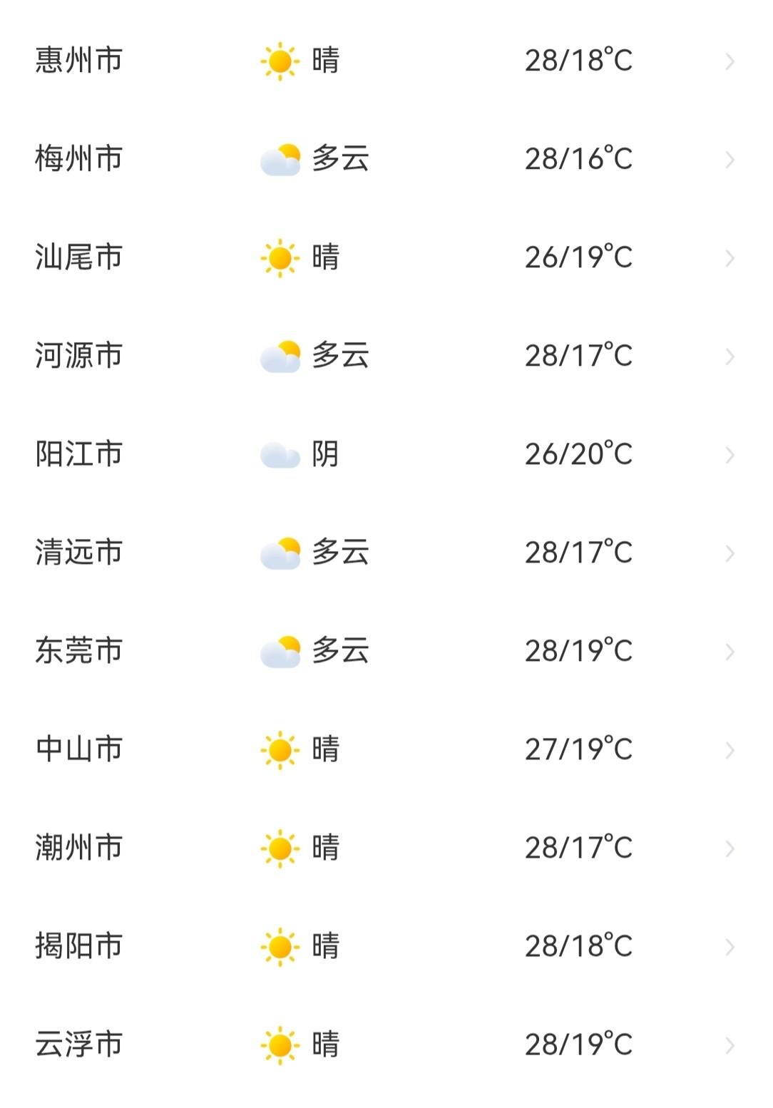 全省气温最高的城市分别是广州、佛山、茂名、湛江、肇庆、惠州、梅州、河源、清远、东莞、潮州、揭阳、云浮
