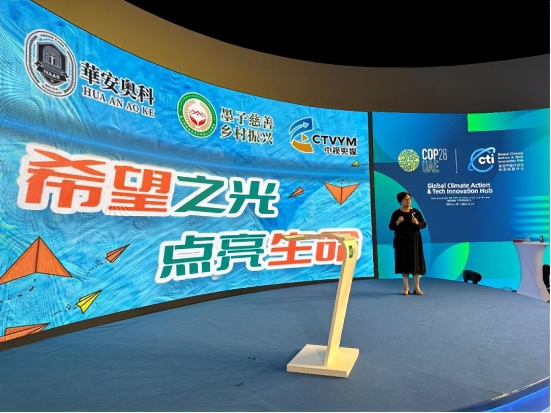 此外,在本届联合国气候变化大会(COP28)上,朱新兰主席还参与了多场重要的圆桌论坛,在有关应对气候变化,实现碳达峰、碳中和目标,气候影视宣传等多个议题上发表了自己独到的见解。同时,她也在不同的场合多次提到“希望之光·点亮生命”公益计划,时刻不忘为公益事业摇旗呐喊。