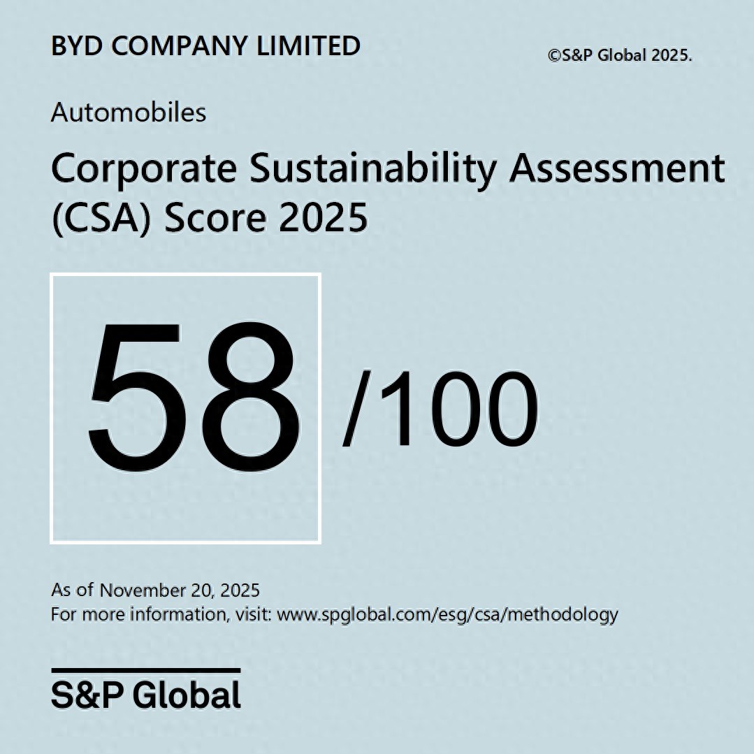 通过以上卓越的ESG实践,我们不仅在评级分数上取得突破性进展,亦在今年荣获福布斯中国“2025中国ESG 50”榜单、央视“中国ESG上市公司先锋100”榜单等多项荣誉,成为新能源汽车行业ESG标杆。这些认可既是我们响应国家绿色低碳政策、践行全球可持续发展承诺的体现,也彰显了比亚迪将ESG融入战略、打造核心竞争力的决心。比亚迪的绿色步伐从未停歇。2025年11月,比亚迪“i迪碳链”碳管理平台正式上线,这意味着比亚迪的绿色管理更进一步,为比亚迪的碳中和目标提供了非常关键的系统支撑。同时,比亚迪发布了元UP碳足迹报告,元UP的碳足迹低至138.68 CO₂e/km,并通过国际权威第三方认证机构SGS核查。这意味着比亚迪的产品在从生产到销售,从使用到最终报废回收,不仅安全、智能,更绿色环保。未来,我们将继续深耕ESG管理,以技术创新构建绿色产品竞争力,依托全球产业链协同推动供应链可持续发展,全面护航比亚迪出海战略,确保海外业务符合国际ESG准则和期望,为全球市场创造长期价值。