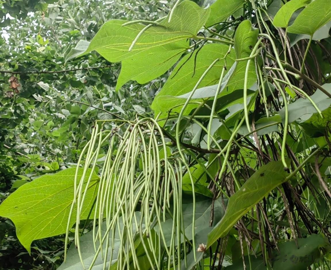是紫葳科“梓”属多年生落叶乔木,田间植株可以高达15米左右,树冠伞形,主干通直,嫩枝具稀疏柔毛。