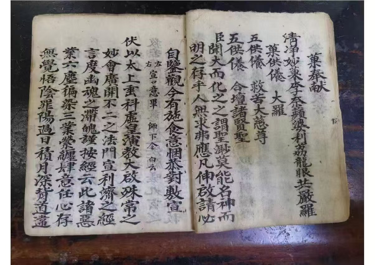 作为统领,正案还承担衔接左案、右案的作用。对应环节会明确提示 “需左案文书辅助”“可依右案补充”:如 “请神上表” 时,指明用左案表文格式,若超度对象特殊,可参考右案差异化祝祷;“施食济度” 环节,规定主流程后,指引扩大范围可衔接右案 “广大焰口” 仪轨,让三册形成有机整体。