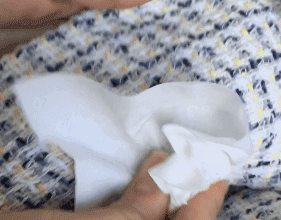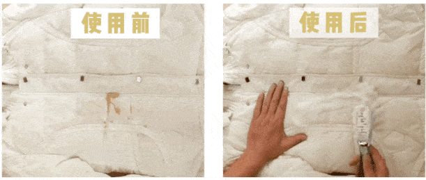 也就不到30秒的功夫, 就能洁净如新, 擦完以后干净不留印记, 不用水洗,不用晾晒, 洗完以后立马就能穿上身 而且它的味道一点都不难闻 闻起来是淡淡椰香,很好闻
