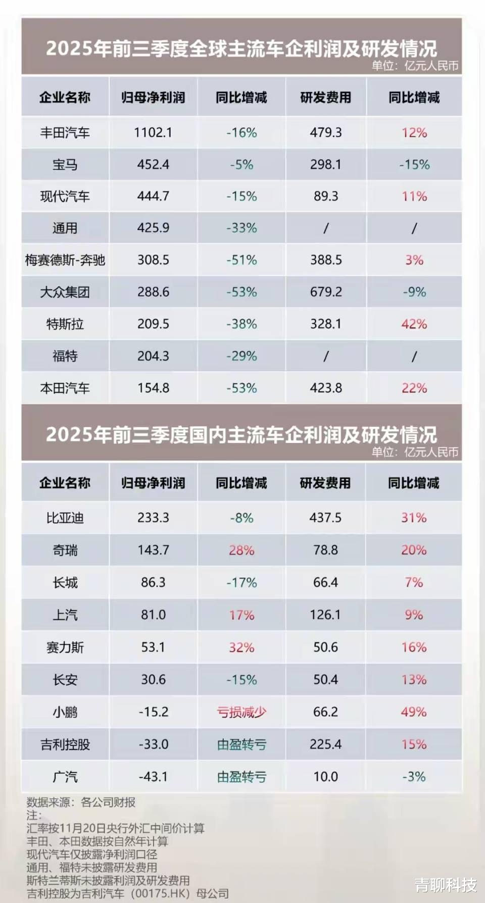 盈利能力的对比更是悬殊。受多重因素影响,奔驰、大众等海外车企利润大幅下滑,降幅甚至超过50%。与此同时,比亚迪、奇瑞等中国品牌净利润均突破百亿大关,展现出超强盈利韧性。