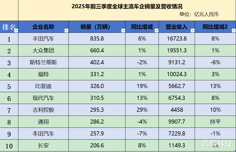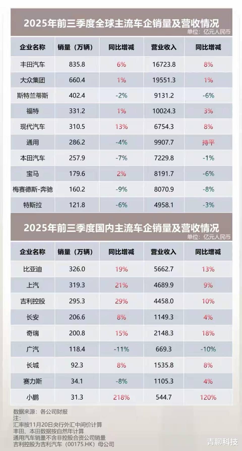 2025年临近收官,全球汽车行业正在经历一场深度调整。最近发布的三季报显示,海外传统车企普遍遭遇增长瓶颈,而中国品牌却逆势上扬,形成了鲜明对比。