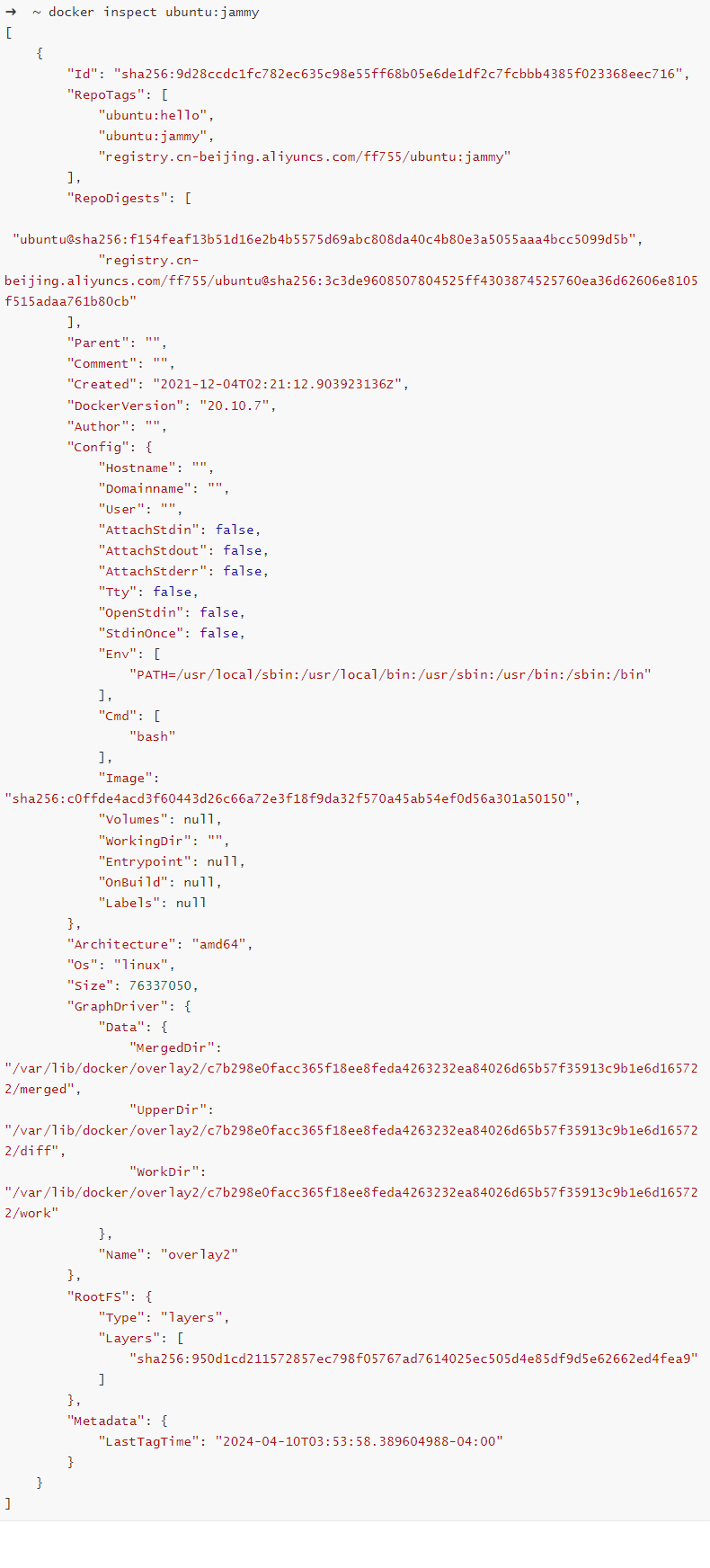 docker tag ubuntu:jammy ubuntu:hello创建了一个用ubuntu:jammy镜像,创建了一个新的镜像,标签为ubuntu:hello