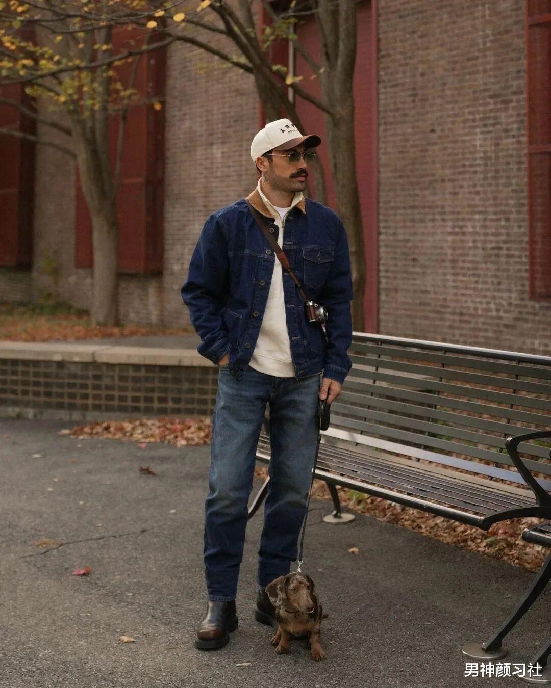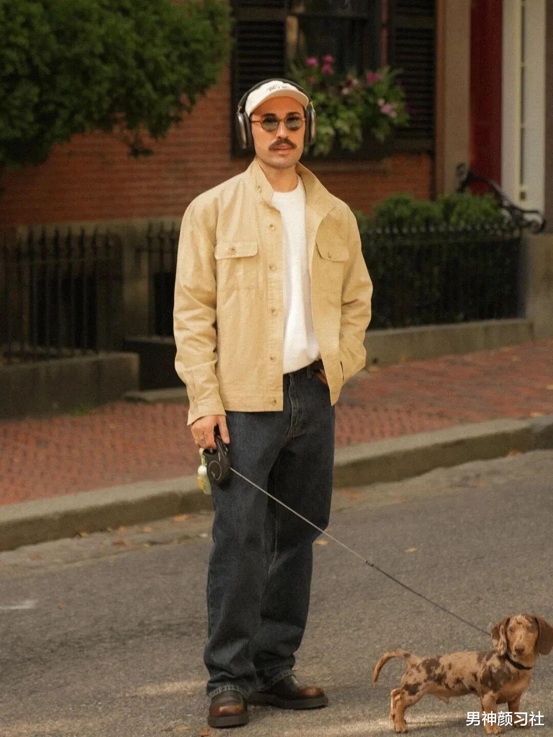 他还很爱穿各种夹克,奶油色夹克色调温润、没有攻击性。他的固定公式是:奶油色夹克 + 白色内搭 + 牛仔裤。白色内搭作为中间层,起到了极佳的“补光灯”作用,让肤色看起来更健康。
