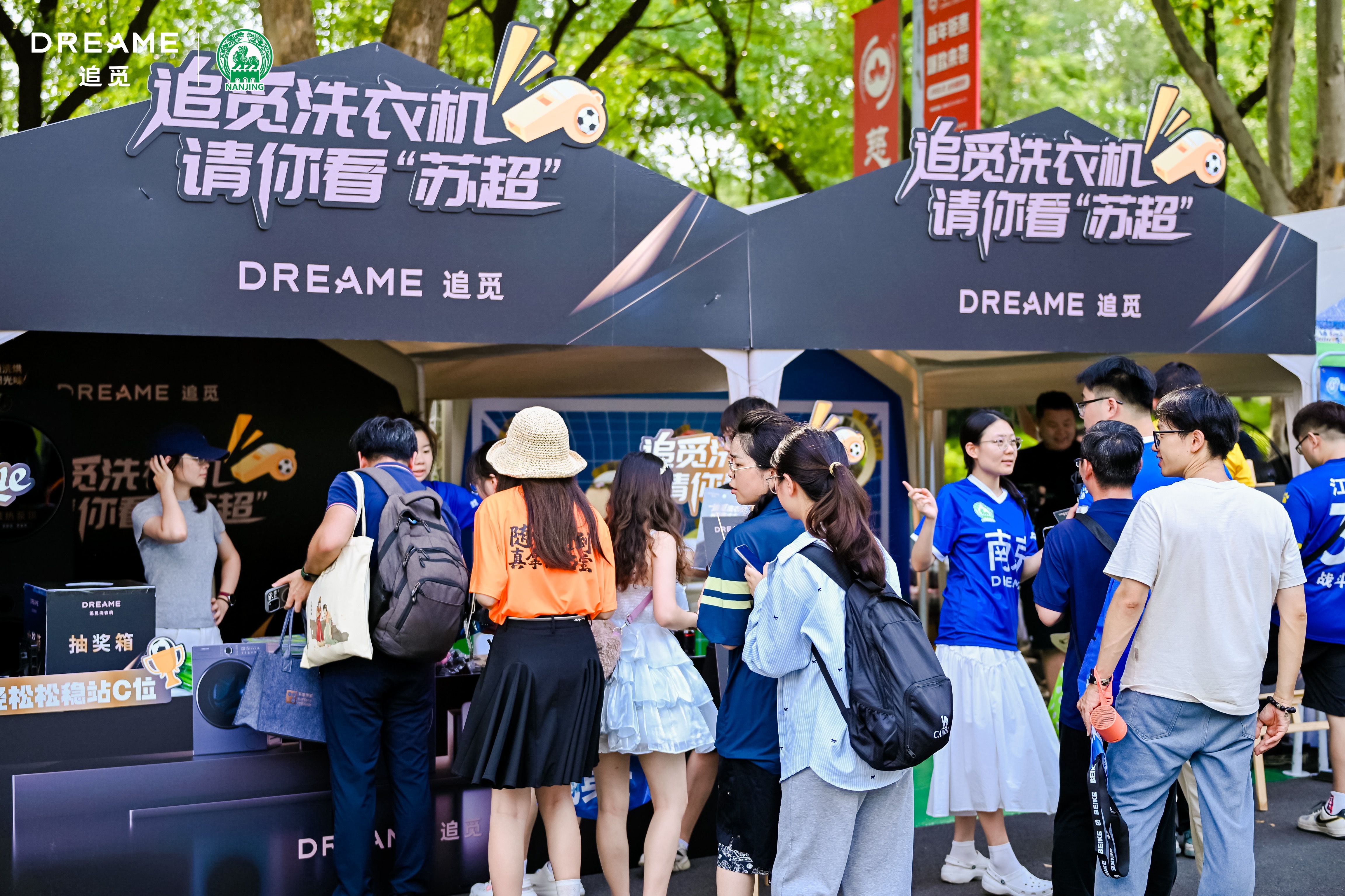 除了产品展示,追觅更将赛场内外的氛围推向高潮:精准射门赢定制周边、扫码解锁“快乐水”和新品洗衣机五折购机资格,成为球迷朋友圈里的刷屏话题。追觅特别准备了定制足球、南京“当红明星”杜杜玩偶、苏超应援道具,以及限量版追觅周边礼盒,把现场变成一场科技与运动的狂欢嘉年华。绿茵拼搏的热血,与未来洗护的智慧交织,让球迷在享受比赛的同时,也提前触碰到智能生活的无限可能。
