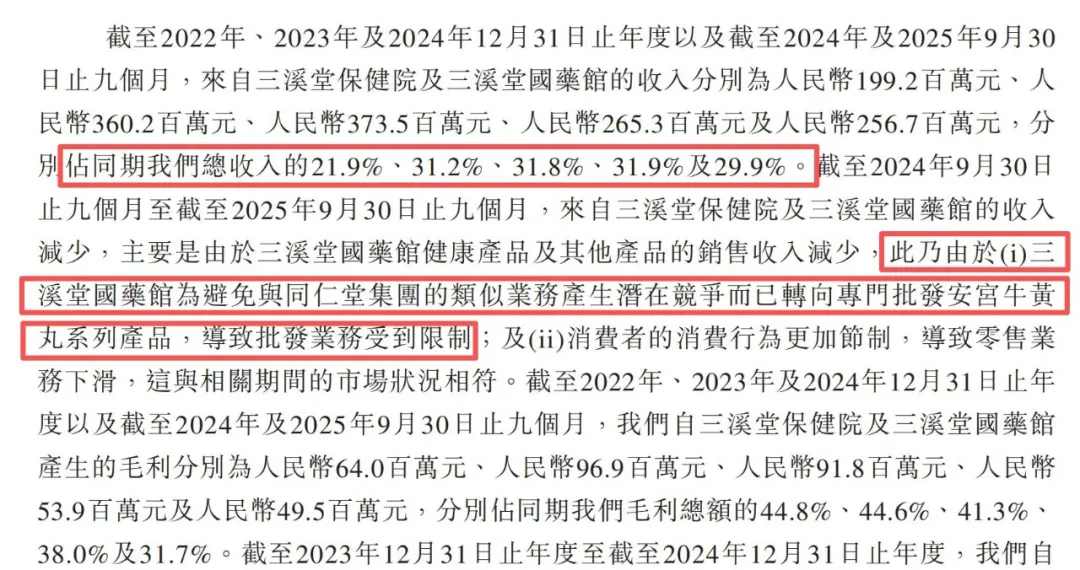 招股书数据显示:2023年和2024年,三溪堂贡献的收入分别占集团总收入的31.2%和31.8%。