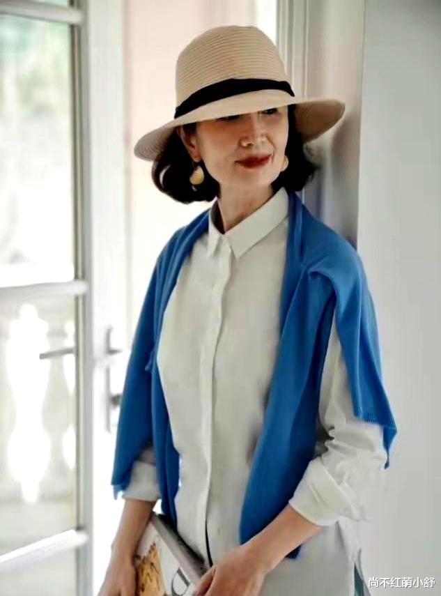 亮色容易显廉价?三木妈妈还会戴银色细项链或小耳钉,金属的冷感中和亮色的暖,高级感立刻上来。比如她穿白色衬衫搭配蓝色的针织披肩,戴稍大一点的耳饰,上身瞬间有了“反光板”,比戴金镯子洋气多了。