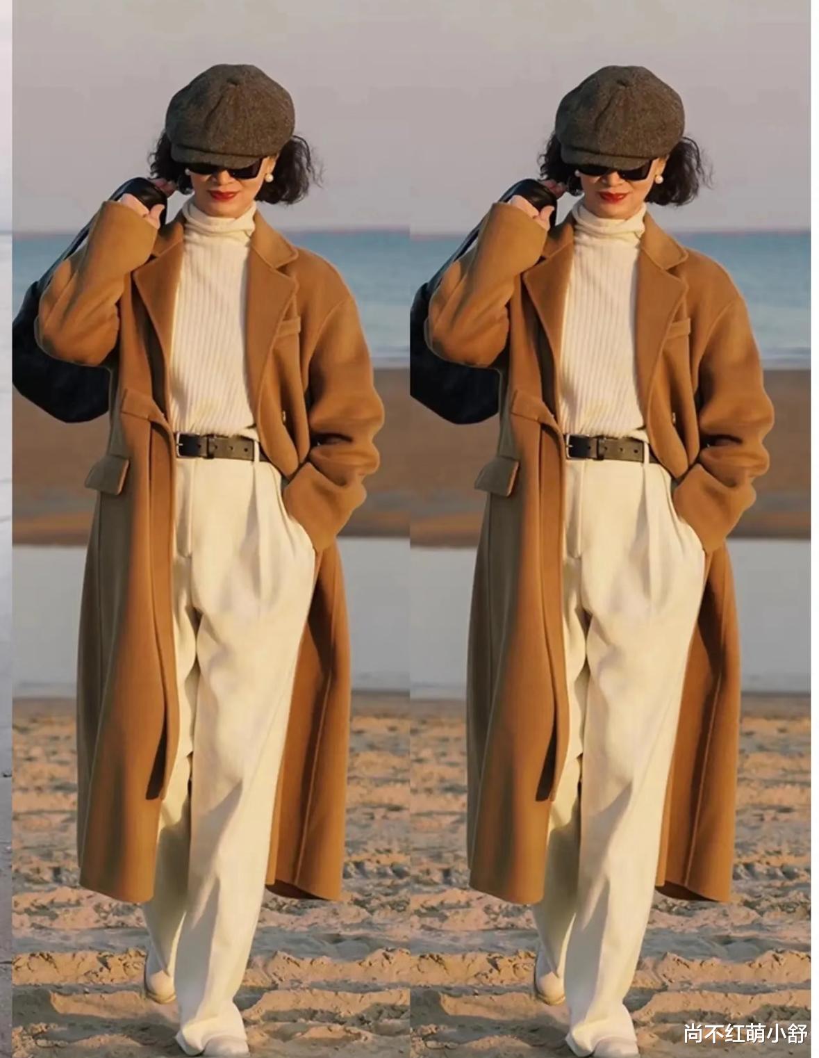 三木妈妈的草编帽永远比脸大一圈,帽檐往下压1厘米,显脸小还遮白发;还有贝雷帽,深咖色配同色系大衣,复古又洋气。记住“帽子颜色和衣服呼应”,比如穿黑色大衣就戴黑色帽子,整体协调得像定制款。