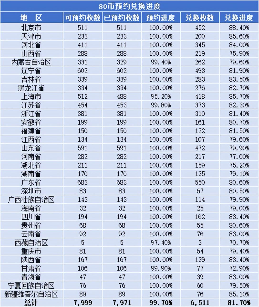 全国一共被兑换走6511万枚,剩下1488万枚被放弃!