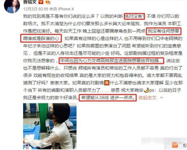 但随之而来的就是各种负面消息,排挤演员、加戏抢戏、改动剧本,剧组演员直接下场开撕,细数了曹曦文的多宗罪。