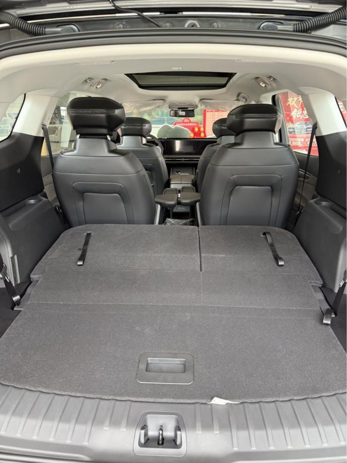 坐进第二排,两个独立座椅确实舒服,中间通道宽裕,老人进出第三排不用费劲弯腰。第三排我1米75的个子试了试,短途坐没问题,比汉兰达和途昂Pro感觉要宽松点。后备箱在七座状态下也能放下两个登机箱,如果第三排不坐人,放倒之后简直能当小货车用。对于我们这种偶尔要带老人孩子、偶尔要拉点年货家用的家庭来说,这个空间灵活性很关键。
