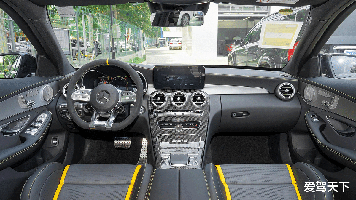 奔驰AMG C43在豪华和战斗之间平衡得最好。用料高级、大量AMG元素、翻毛皮方向盘、运动座椅,共同营造出类似飞机驾驶舱的沉浸感。论座舱的氛围,奔驰确实拿捏得死死的。