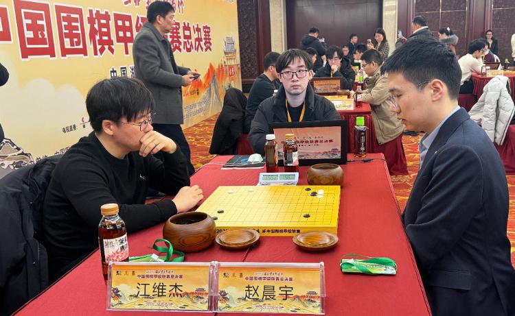 眼看形势危急,江苏队发起了猛烈反扑。第三台的陈一纯六段执黑迎战陈贤八段,两人鏖战319手,胜率几度如江涛般剧烈起伏。最终,陈一纯同样以四分之一子的差距惜败,江苏队抢回一分。压力全部聚焦到第一台,仁怀酱香队世界冠军江维杰九段执黑对阵赵晨宇九段。