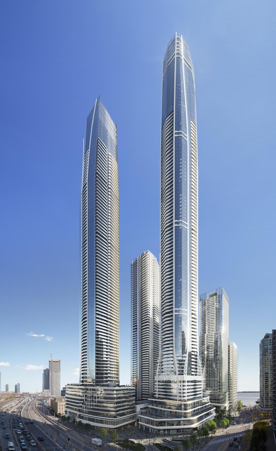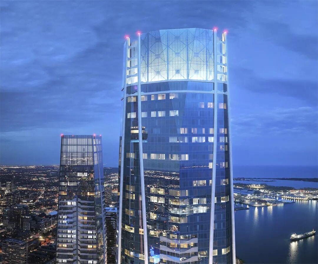 设计天空大厦的是当地有名的Hariri Pontarini Architects建筑事务所。主设计师David Pontarini提到,他们希望这栋楼能像雕塑一样立在天际线上,并且特意让106层的餐厅能与远处的加拿大国家电视塔形成视觉上的呼应。