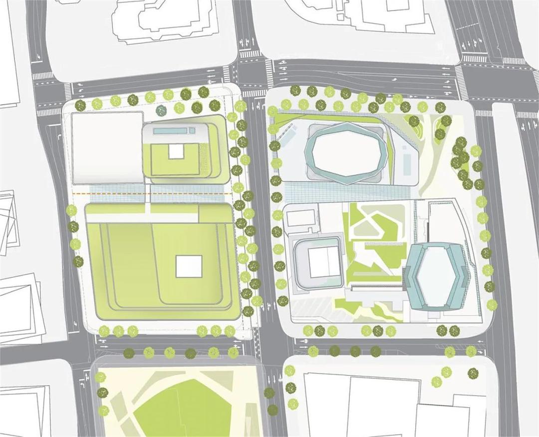 从外观上看,大楼整体是流线型的玻璃幕墙,上面装饰着白色的竖向线条,造型被形容为“12面的宝石”。这样的设计不仅好看,还能有效减少湖边大风对建筑的影响。大楼底部与街道衔接得很自然,环绕的玻璃顶篷为行人遮风挡雨,也让街道氛围更加友好。