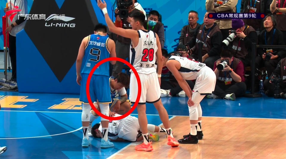 然而,这番看似专业的力挺并未能平息球迷的怒火,反而被指责为“拉偏架”和“洗白”。甚至有球迷指出,周琦倒地后的运动轨迹显得颇为蹊跷,周琦在失去重心后似乎有一个非自然的变向动作,原本的倒地路径应当是偏向另一侧(甚至可能波及附近的赵睿),但他身体却诡异地扭向了徐杰所在的位置。竞技体育中冲撞倒地在所难免,且不论起因是否涉及假摔,但周琦在起身后的一系列反应令人寒心。画面显示,周琦倒地后显得惊魂未定,长时间趴在地上未敢起身,这一反应或许源于对自身受伤的恐惧,尚可理解。但在确认自己无大碍后,面对因自己撞击而痛苦蜷缩、紧握膝盖的徐杰,周琦并未在第一时间上前查看伤情或表达歉意,赵睿则蹲下来查看徐杰伤情,随后周琦更是向裁判抱怨对手的推搡动作,甚至因此吃到了技术犯规。