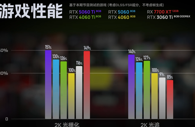 默认性能:4060<3060ti<4060ti<5060<7700xt<5060ti
